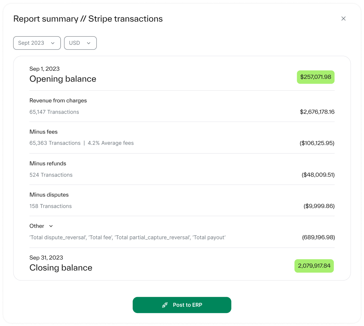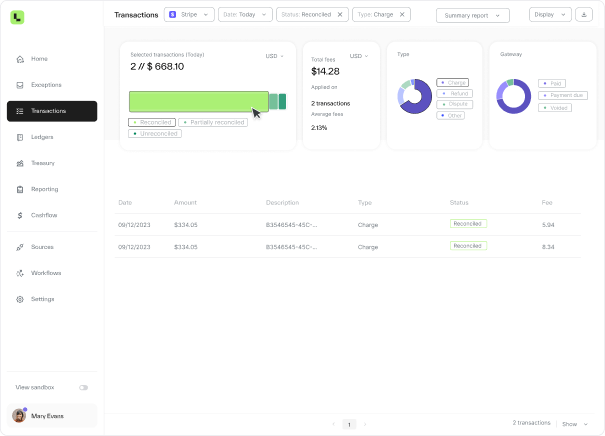 - Capture every detail: Account for all details of customer payments and reconcile fees, taxes, discounts, disputes, chargebacks, refunds, and more.
