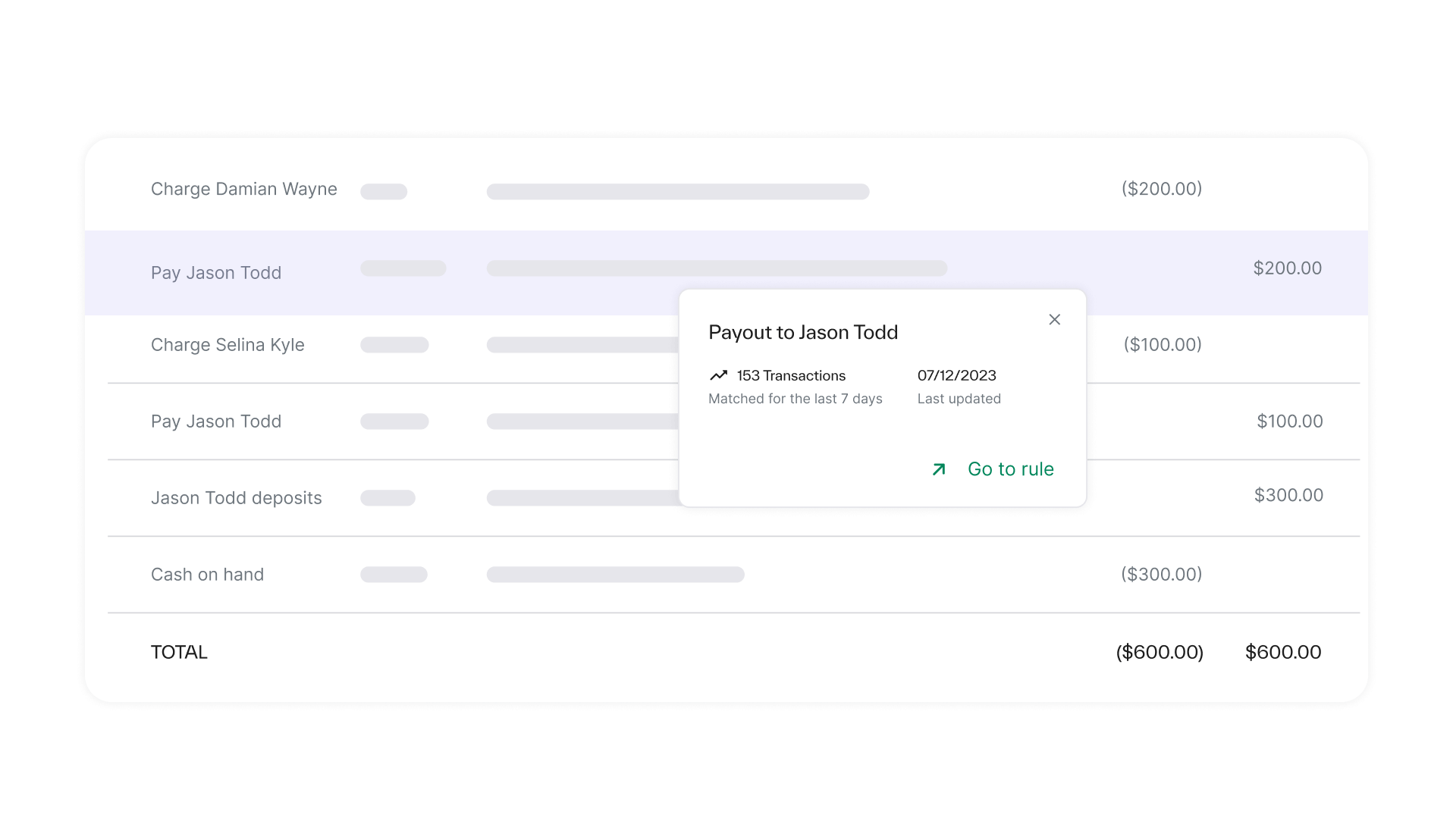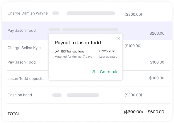 - Clear paper trail: Close your books with the confidence knowing incoming and outgoing payments are automatically reconciled at the transaction level, giving you transparent, audit-read data.