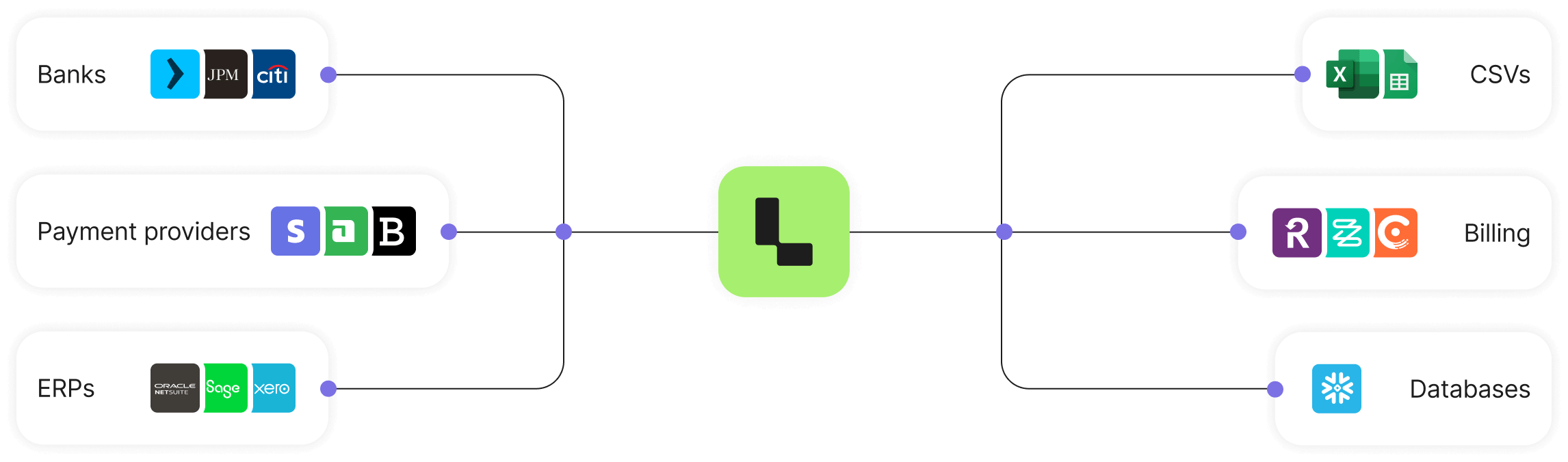 Reconcile accounts by matching transactions across systems - bank, ERP, PSP, internal or other - by entity, GL account, and currency. Automatically.