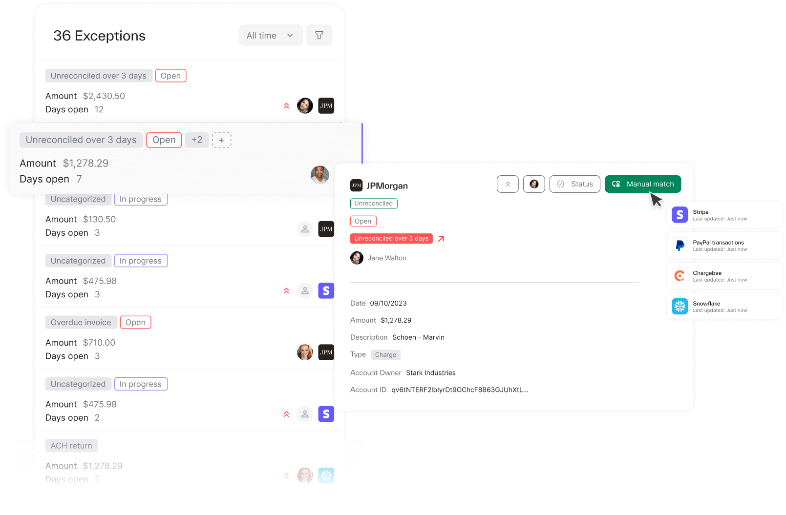 The problem: Teams that don’t perform continuous reconciliation around the clock take time to detect issues such as duplicate transactions, late payments, missing transactions, bounced checks, or ACH reversals.