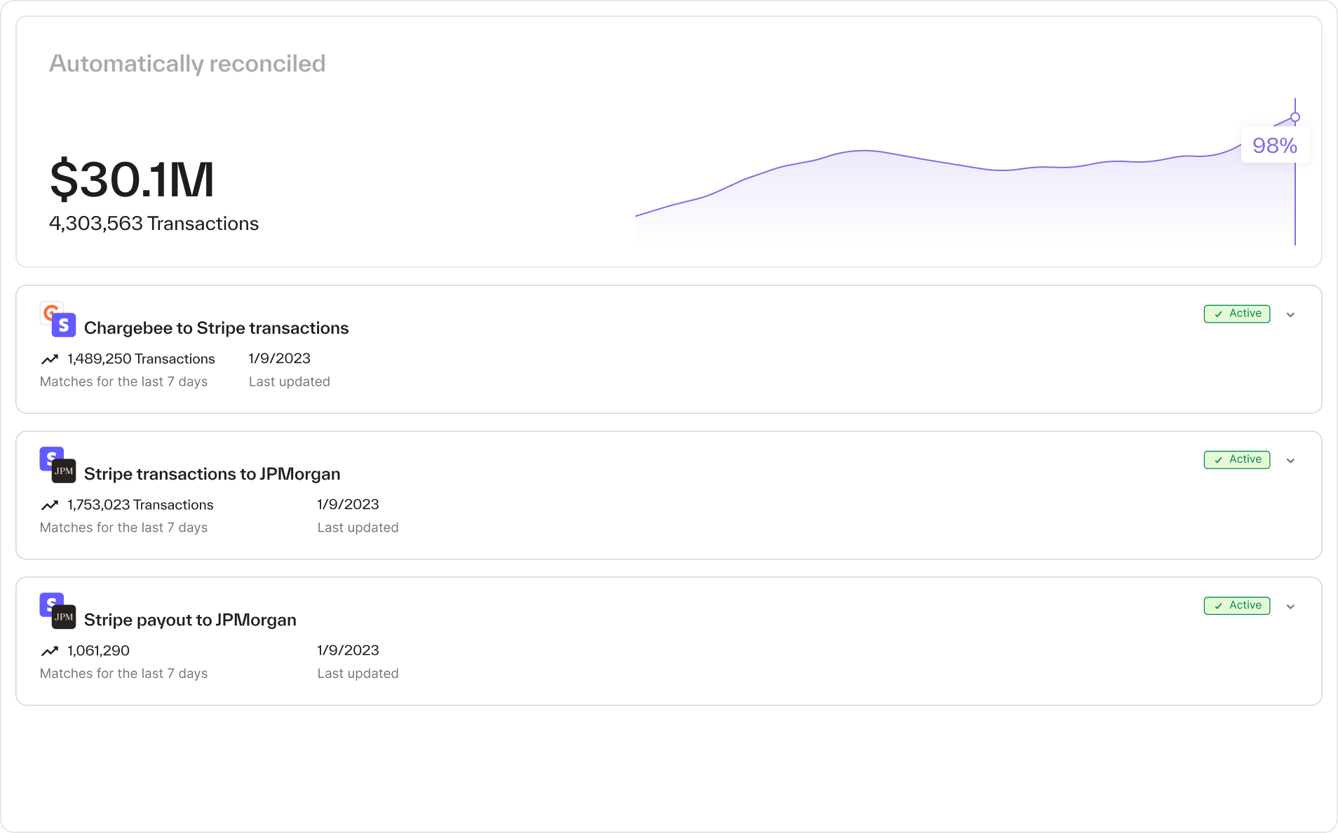 The challenge: Finance teams working in Excel can automate transaction matching to a degree by running VLOOKUPs or VBA scripts, but those methods can’t scale with a business that’s processing high volumes of transactions and managing increasingly complex payment flows.