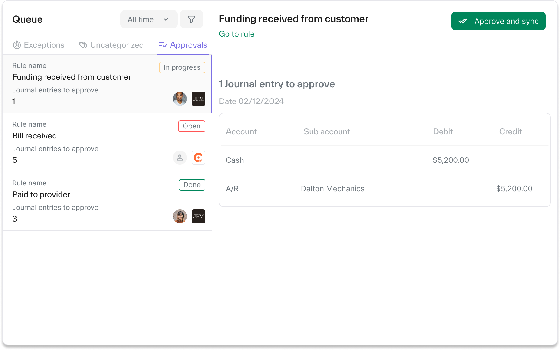 Set up whatever rules and approval flows work best for your business – such as the flexible generation of aggregate journal entries, per transaction, by month, or by product line – and maintain total segregation of duties with role-based permissions.