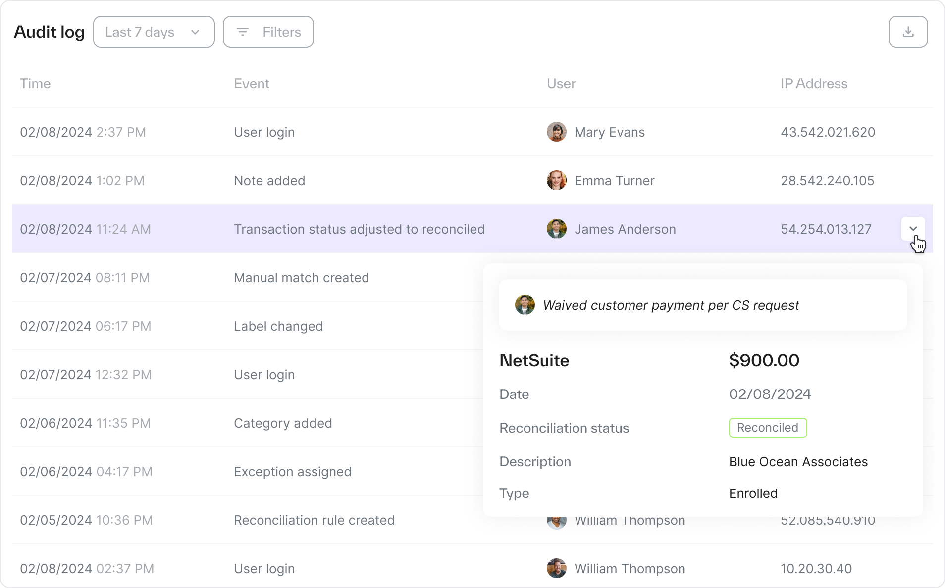 Easily manage an automated approval flow of journal entry postings and reconciliation review, see who created the logic and when, and whenever someone intervened to perform a manual match, easily see who did it, when, and why with a detailed comments log. This makes SOX compliance a breeze.