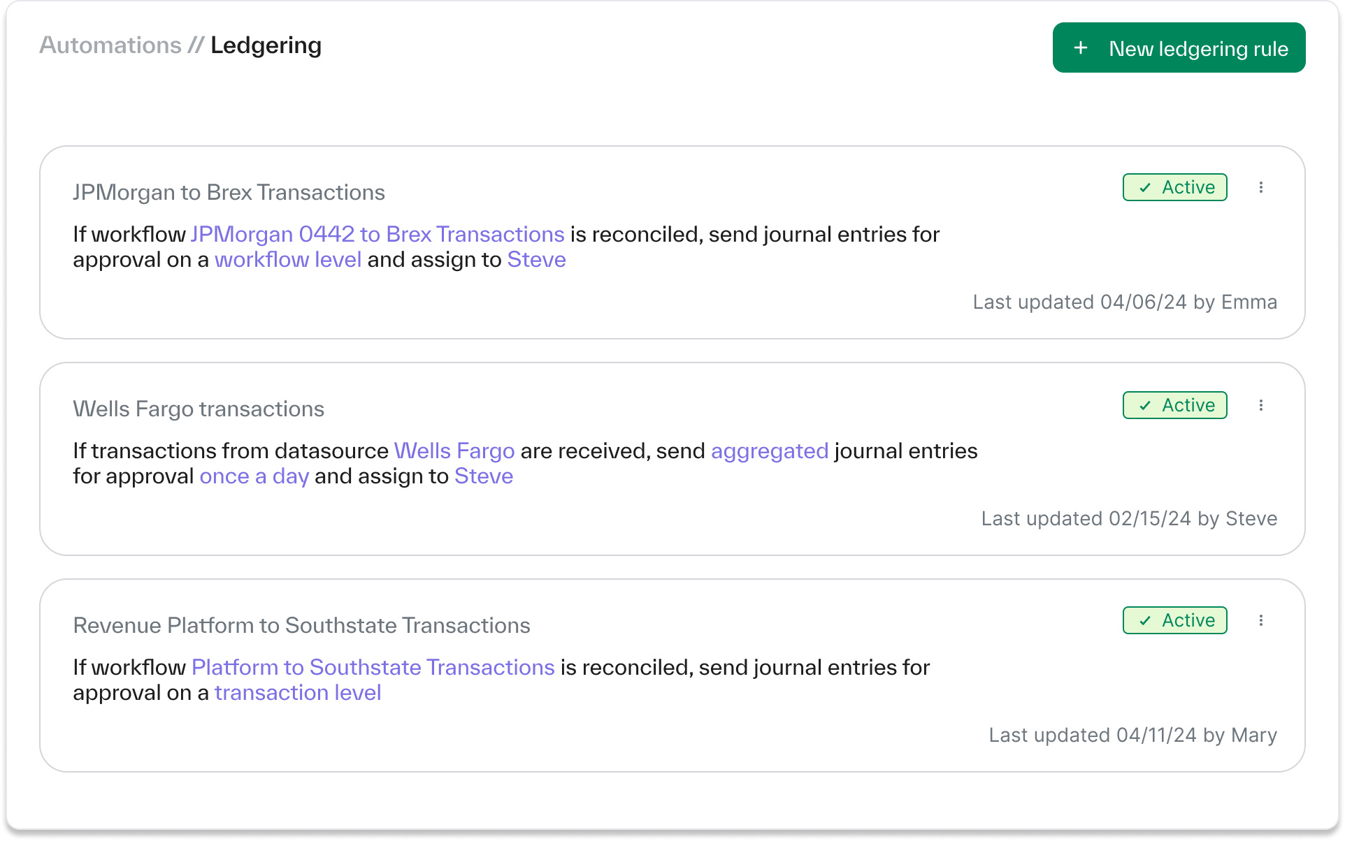 The solution: In an automated finance operations tool like Ledge, every action, whether it’s automated or manual, is recorded and posted in an approval process with an audit log to support it.