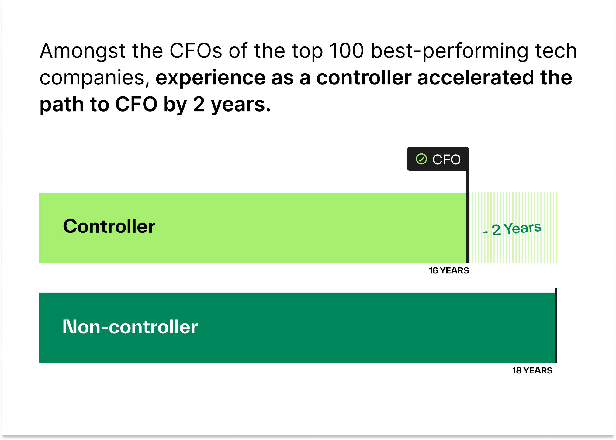 <div class="res-quote-green"><div class="res-quote-green__title">Our take</div><p class="res-quote-green__text"> It should come as no surprise that becoming a CFO takes time and experience. <br/><br/> The individuals on our list became CFOs for the first time mid-way through their careers with nearly twenty years of experience under their belt. <br/><br/> While there are no easy or clear shortcuts, our analysis shows that having a background as an accountant or controller did accelerate the path amongst the professionals on our list. Those with experience as a controller became CFO on average two years earlier than those without – that’s 11% faster. <br/><br/>In addition, having accounting experience gave the CFOs on our list a leg up in terms of being internally promoted.</p></div>