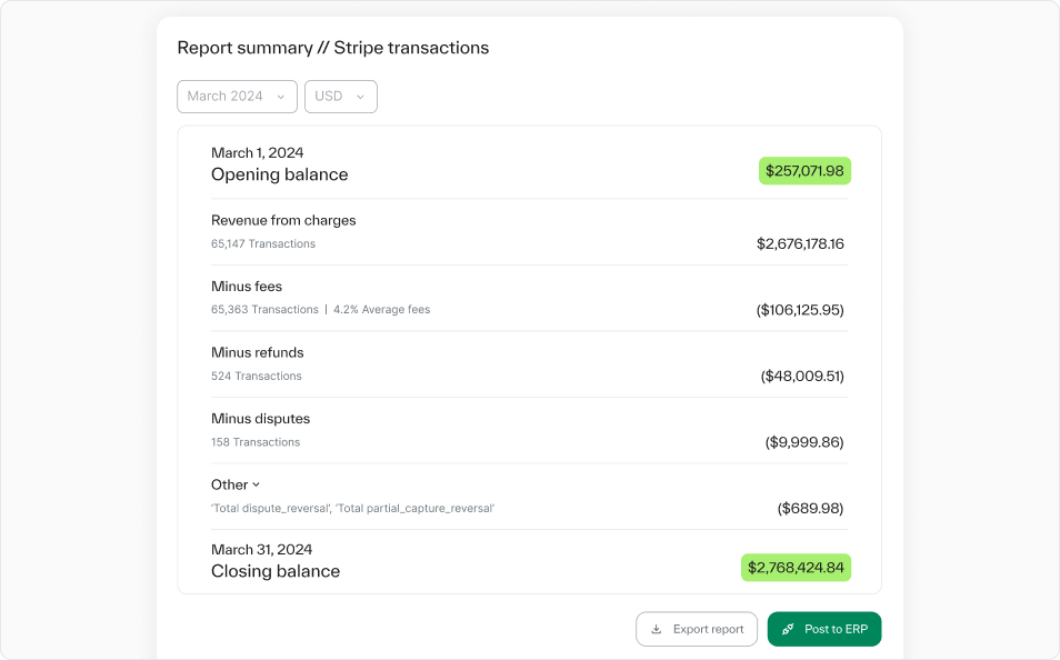 The challenge: Many finance teams manage PSP, bank, and payment processor reconciliation manually in Excel, which can complicate reasonability checks during the audit, making it a real challenge for both you and your auditors to see how much fees you’ve paid and if they’ve been classified correctly.