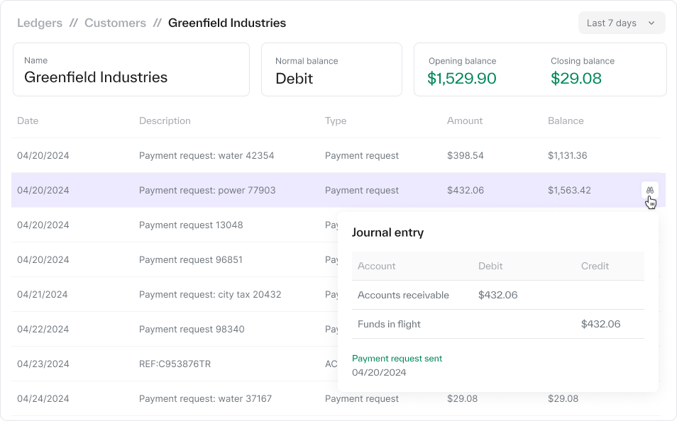 The solution: A solution like Ledge tracks payment flows from start to finish, making it easy to show an auditor the full loop of how the funds originated and were settled from start to finish.