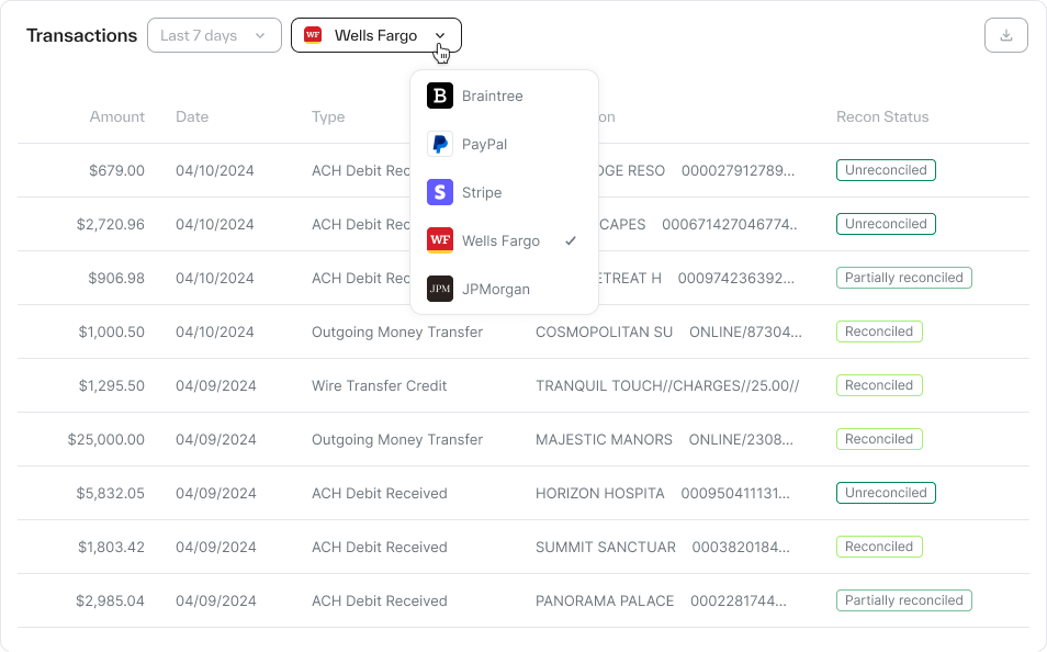 The system consolidates the data across all accounts into one centralized location and enables you to drill down into individual mismatches and unreconciled activity.