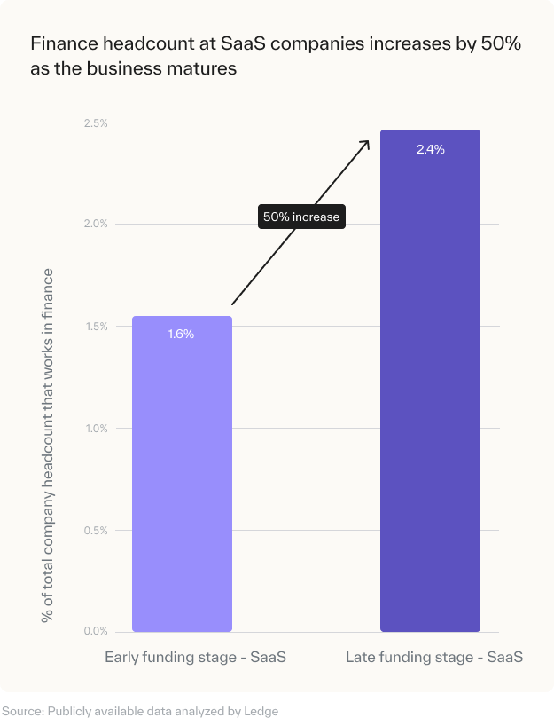 3. In SaaS companies, finance teams get 50% bigger in later stages