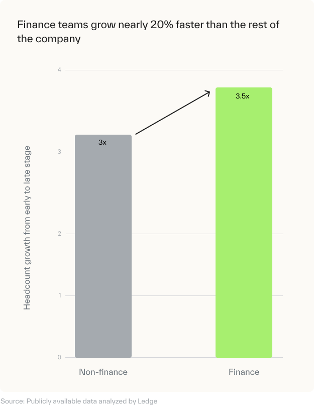 That means that as companies scale, their finance teams grow more quickly than all other teams combined in the rest of the company.
